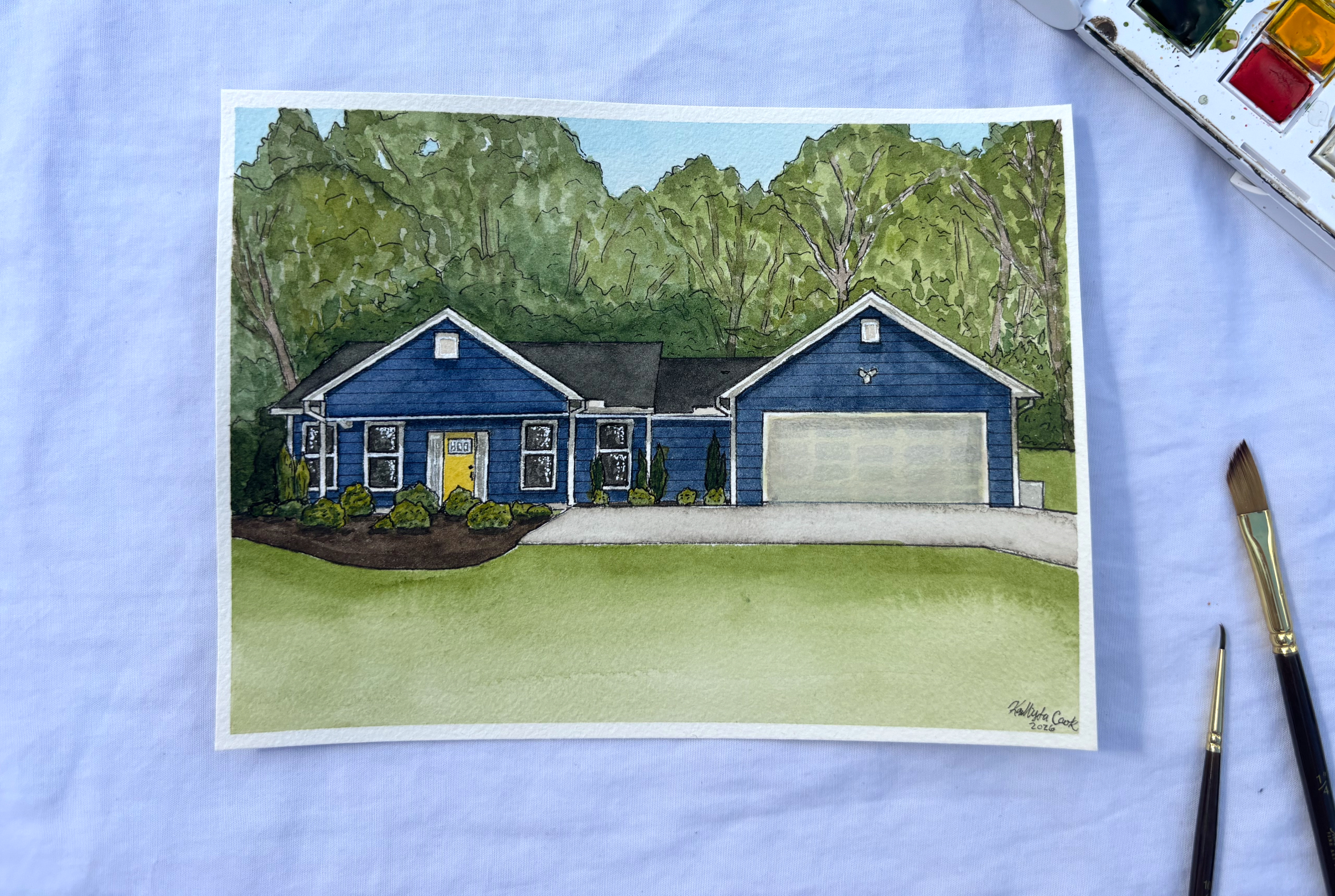 I’m Kallista, but everyone calls me Kallie. I am a self-taught watercolor artist from Chattanooga, TN, and I have always loved creating custom pieces of artwork. I started painting more regularly in 2020, going to a little farmers market with my friends and selling commissions, bookmarks, and greeting cards. I painted custom shoes for friends and family portraits. This is when I fell in love with creating keepsakes. Something that marks a specific, important milestone that you can look back on with joy. After my husband and I moved to Rome, GA. (more specifically, Cedartown), and starting our own house hunting journey, I became inspired by the uniqueness of every home we encountered. I created this business to slow down and embrace the details. The thoughtful touches of buildings that make them special to me and you. I am so thankful for the opportunity to paint a piece of your story!